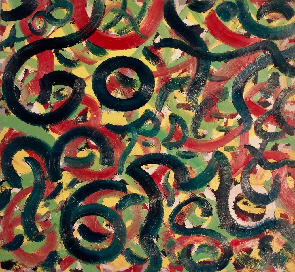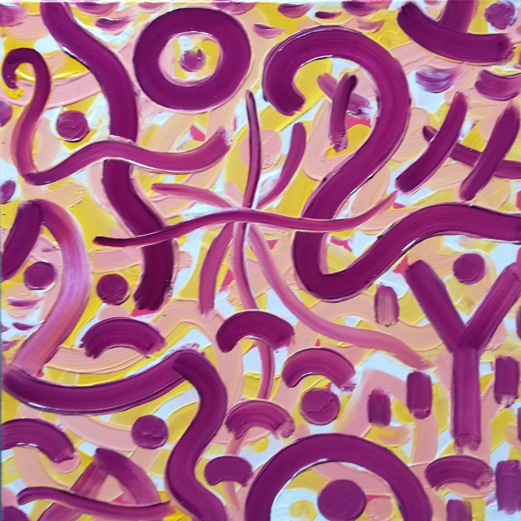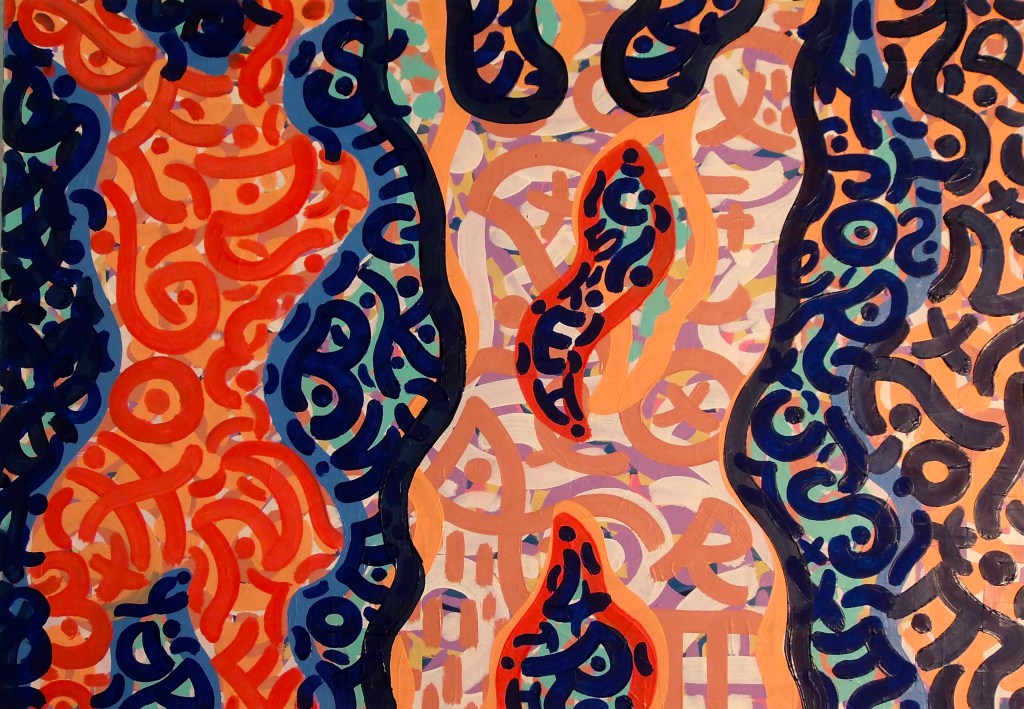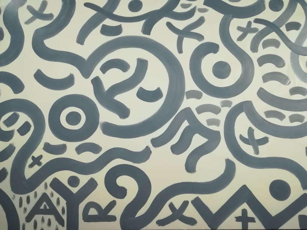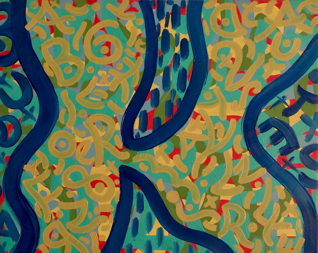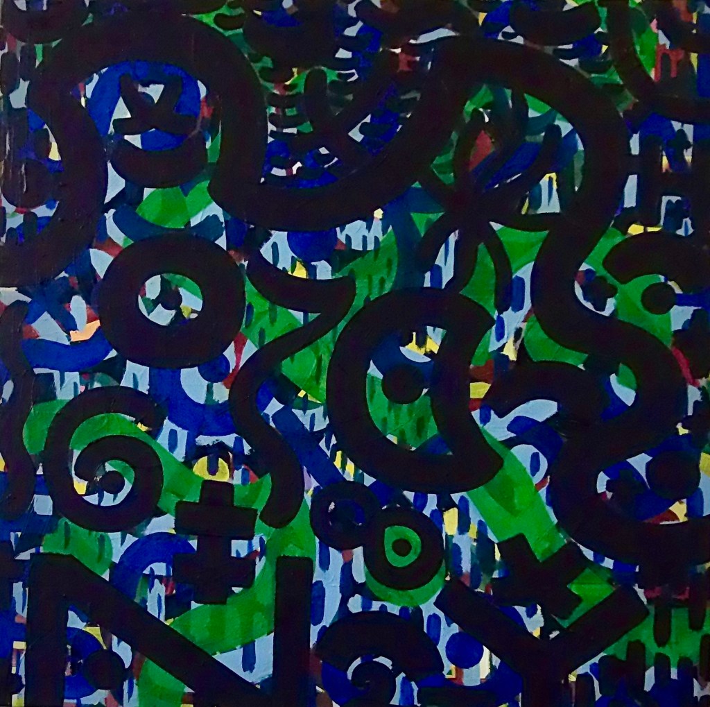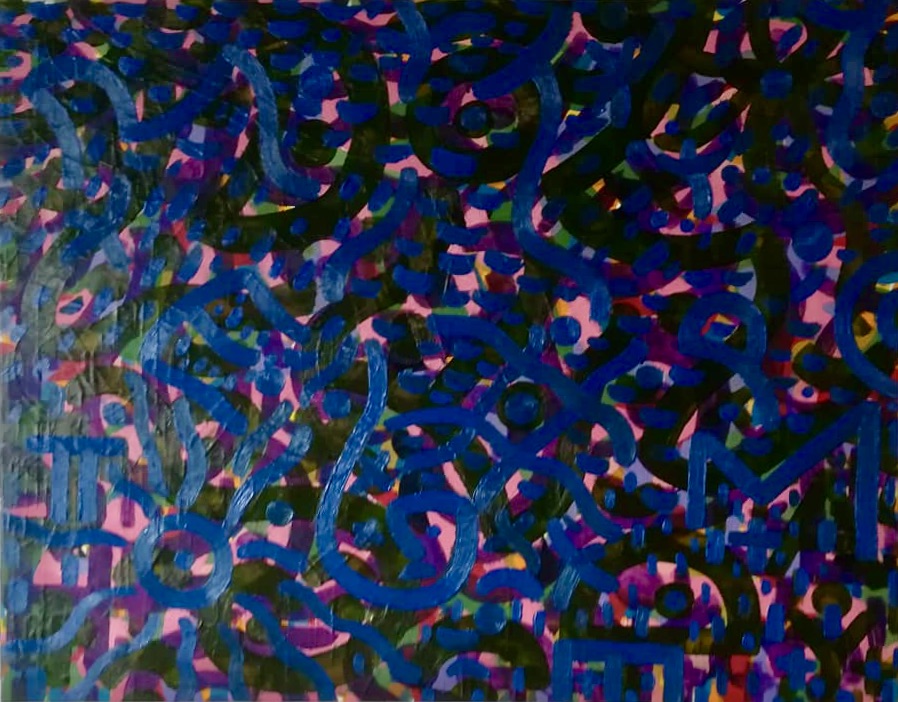 Babble Unspoken Words Series is the working title of this collection of paintings some of which have been reworked from the earlier Action Reaction series. These recent paintings are all oil on canvas with some acrylic and oil on canvas.Their sizes range from the largest 100cm x 150cm to the smaller works at 25cm x 30cm.We exist in an increasingly fast paced world with so many demands for our attention also from the virtual and social media platforms we increasingly spend our valuable time on. This inevitable leads to anxiety and cognitive overload, painting is what I define as a slow time medium and its relevance at this time is its connection to the human hand eye coordination used in the act of painting. This state of Being and living in the moment I feel is paintings advantage over a more conceptual art especially in this time of pandemic Covid 19. We are forced to reappraise our disconnected frantic lifestyles discovering a rich inner world to fall back on. The paintings are my way of navigating these issues where the babble, noise, speed encountered here and online are assimilated into my work. Through language made soundless using calligraphic marks building many layers into the surface of the paintings. I follow mostly my intuition listening to my artistic inner voice to create my personal vision out of the world in which I inhabit.
