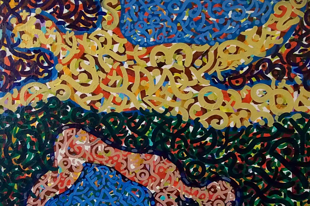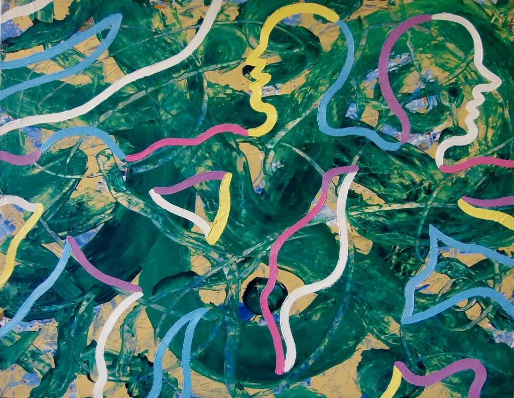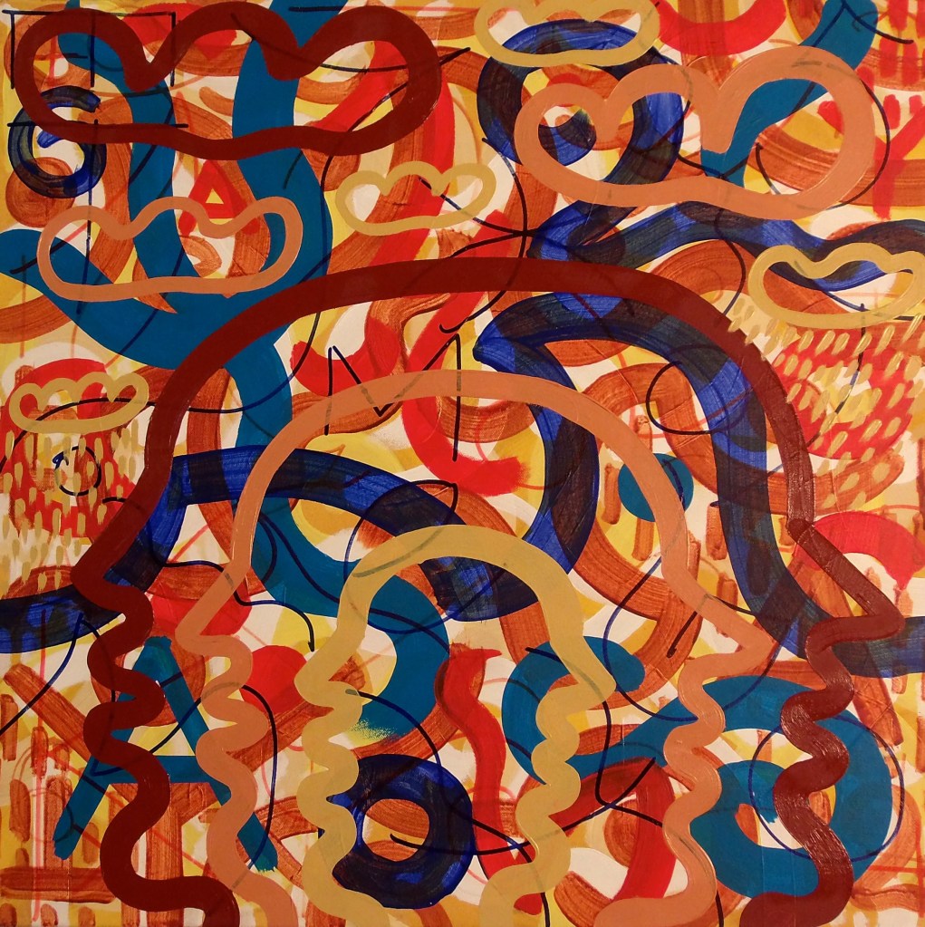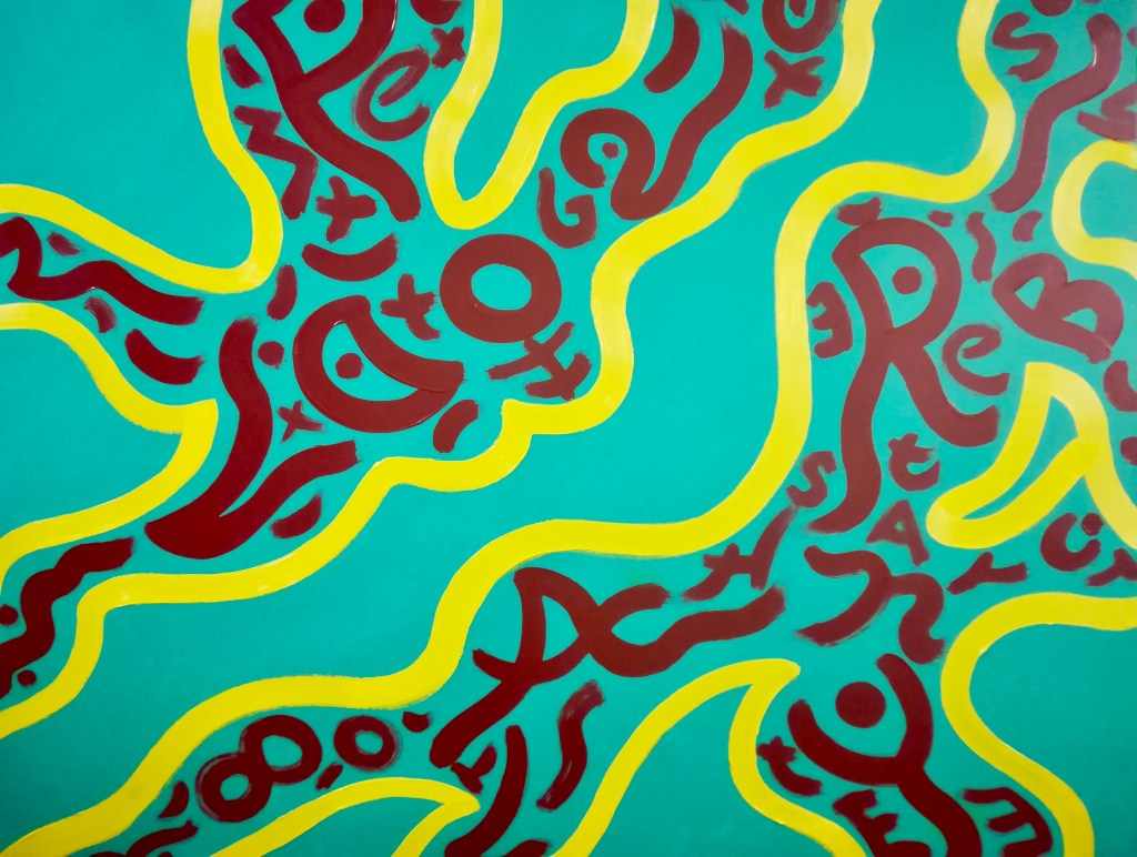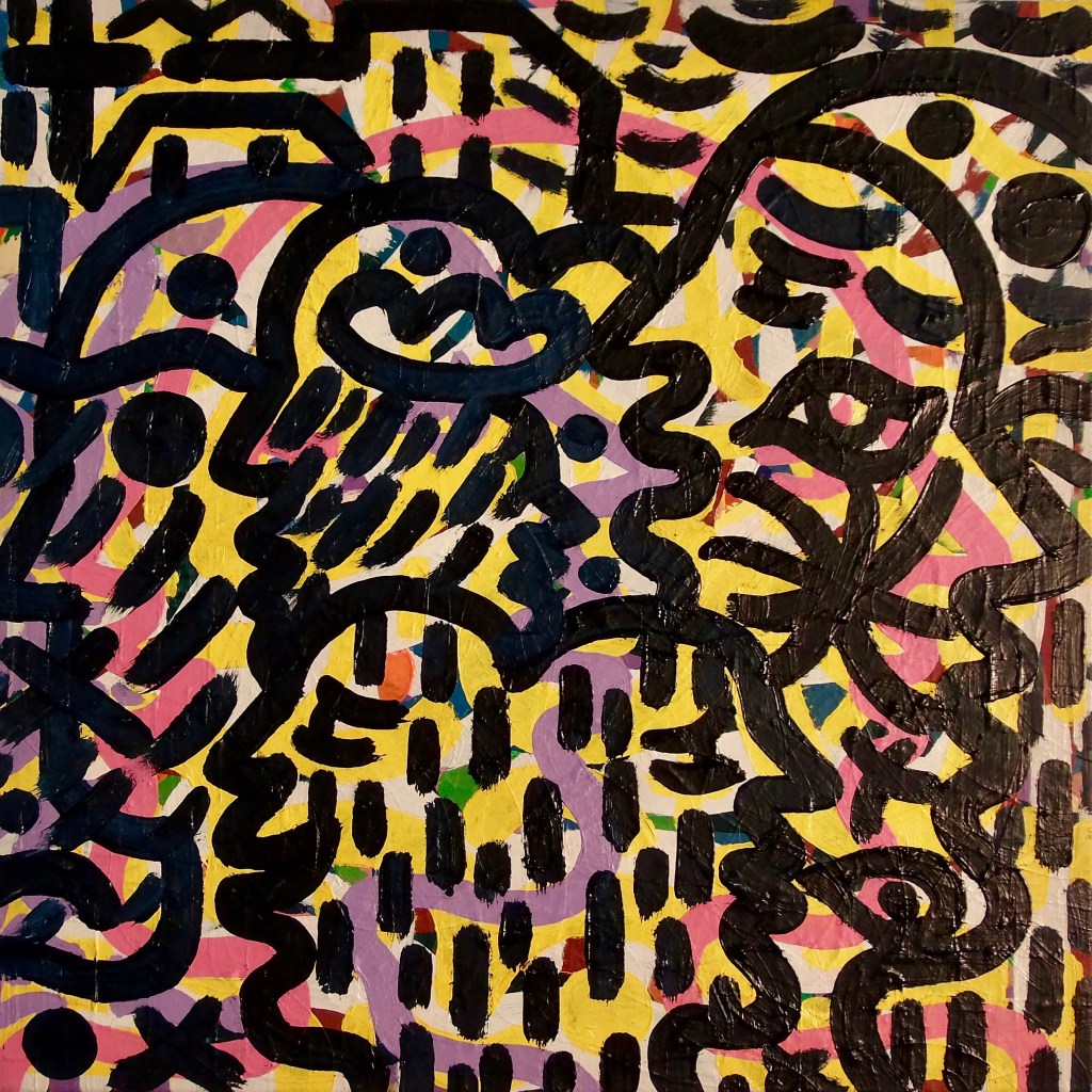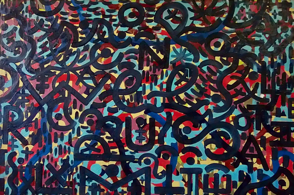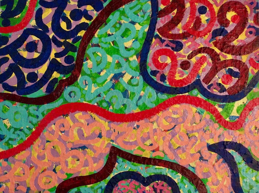 Babble Unspoken Words Series is the working title of this collection of paintings some of which have been reworked from the earlier Action Reaction series. These recent paintings are all oil on canvas with some acrylic and oil on canvas.Their sizes range from the largest 100cm x 150cm to the smaller works at 25cm x 30cm.We exist in an increasingly fast paced world with so many demands for our attention also from the virtual and social media platforms we increasingly spend our valuable time on. This inevitable leads to anxiety and cognitive overload, painting is what I define as a slow time medium and its relevance at this time is its connection to the human hand eye coordination used in the act of painting. This state of Being and living in the moment I feel is paintings advantage over a more conceptual art especially in this time of pandemic Covid 19. We are forced to reappraise our disconnected frantic lifestyles discovering a rich inner world to fall back on. The paintings are my way of navigating these issues where the babble, noise, speed encountered here and online are assimilated into my work. Through language made soundless using calligraphic marks building many layers into the surface of the paintings. I follow mostly my intuition listening to my artistic inner voice to create my personal vision out of the world in which I inhabit.